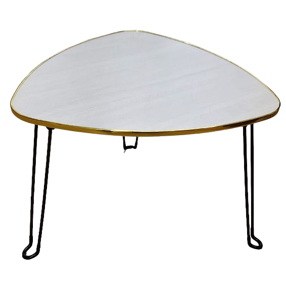 Masa Mica Triunghiulara Alb Auriu cu piciore Metalica Negre