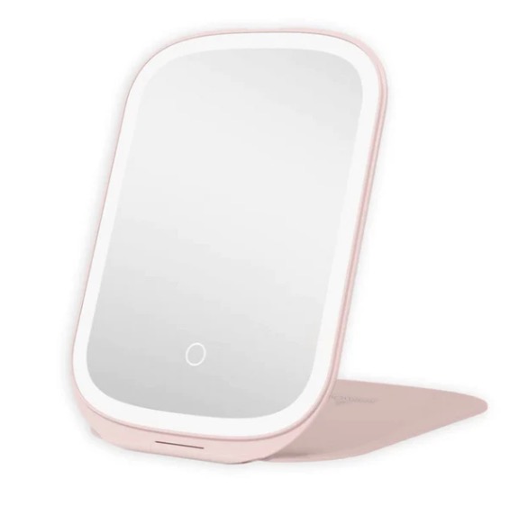 Oglinda LED Portabila pentru Machiaj si Suport Pliabil ROZ