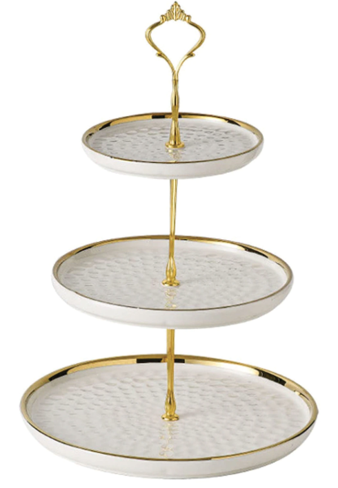 Nu rata ocazia de a impresiona oaspeții cu acest platou pentru prăjituri supraetajat cu 3 niveluri! Perfect pentru a crea o prezentare deosebită a deliciilor tale, acest platou nu doar că îmbunătățește aspectul mesei, dar și ușurează organizarea prăjiturilor. Alege eleganța și funcționalitatea, achiziționează-l acum și transformă-ți evenimentele speciale într-o experiență memorabilă!