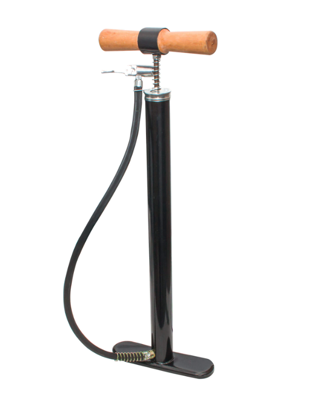 - Mâner Ergonomic din Lemn: Proiectat pentru confort, mânerul asigură o prindere sigură, facilitând umflarea anvelopelor fără efort.
