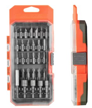 - Varietate de biți: Include 19 biți de 25 mm și 6 biți de antrenare de 50 mm, potriviți pentru diverse aplicații.