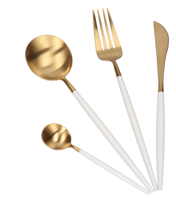 Descoperiți eleganța rafinată a Setului de 4 piese tacamuri în stil portughez, disponibil în culori alb mat și auriu. Acest set pentru 4 persoane include linguri, furculițe, cuțite și lingurițe, realizate din oțel inoxidabil de înaltă calitate, perfecte pentru a adăuga un strop de sofisticare oricărei mese. Designul său modern și original va impresiona cu siguranță oaspeții, transformând fiecare masă într-un eveniment memorabil.