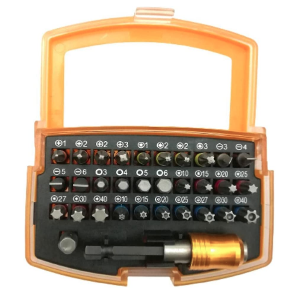 - Versatilitate maximă: Include 32 de vârfuri diferite, adaptabile pentru orice tip de șurub.