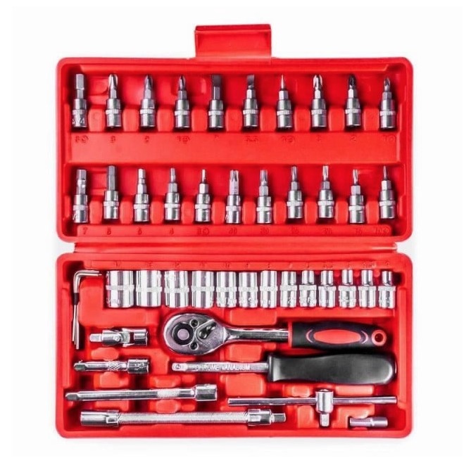 Trusa de 46 Piese chei tubulare și biți AN este partenerul ideal pentru orice pasionat de bricolaj sau profesionist. Această trusă completă îți oferă un arsenal de instrumente esențiale pentru a aborda orice proiect, de la reparații simple până la asamblări complexe. Cu un design robust și ergonomic, fiecare piesă este gândită pentru a-ți aduce eficiență și precizie în munca ta.